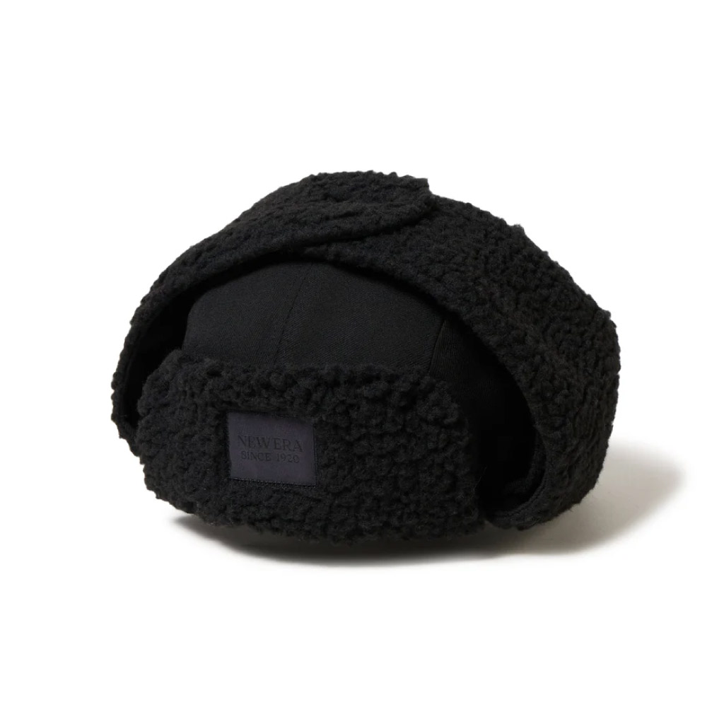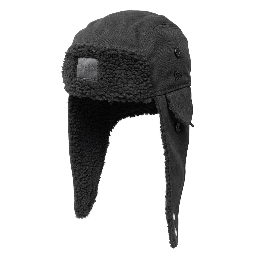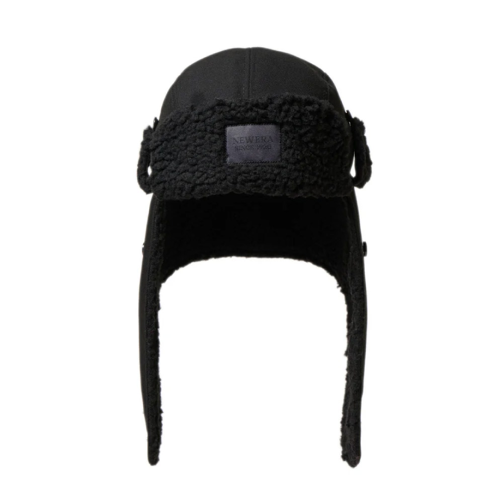 NEW ERA ニューエラ ニットキャップ 【トラッパー Black Woven Patch】 パッチ ニット帽 防寒 冬小物 スノーボード スキー 無地 ユニセックス ブラック [cp-newera-bk1441]