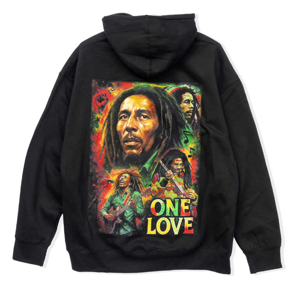 プリントパーカー 【 ONE LOVE 】 プルオーバー ボブ・マーリー レゲエ ラスタ 裏起毛 [w-pk-print-h2664]