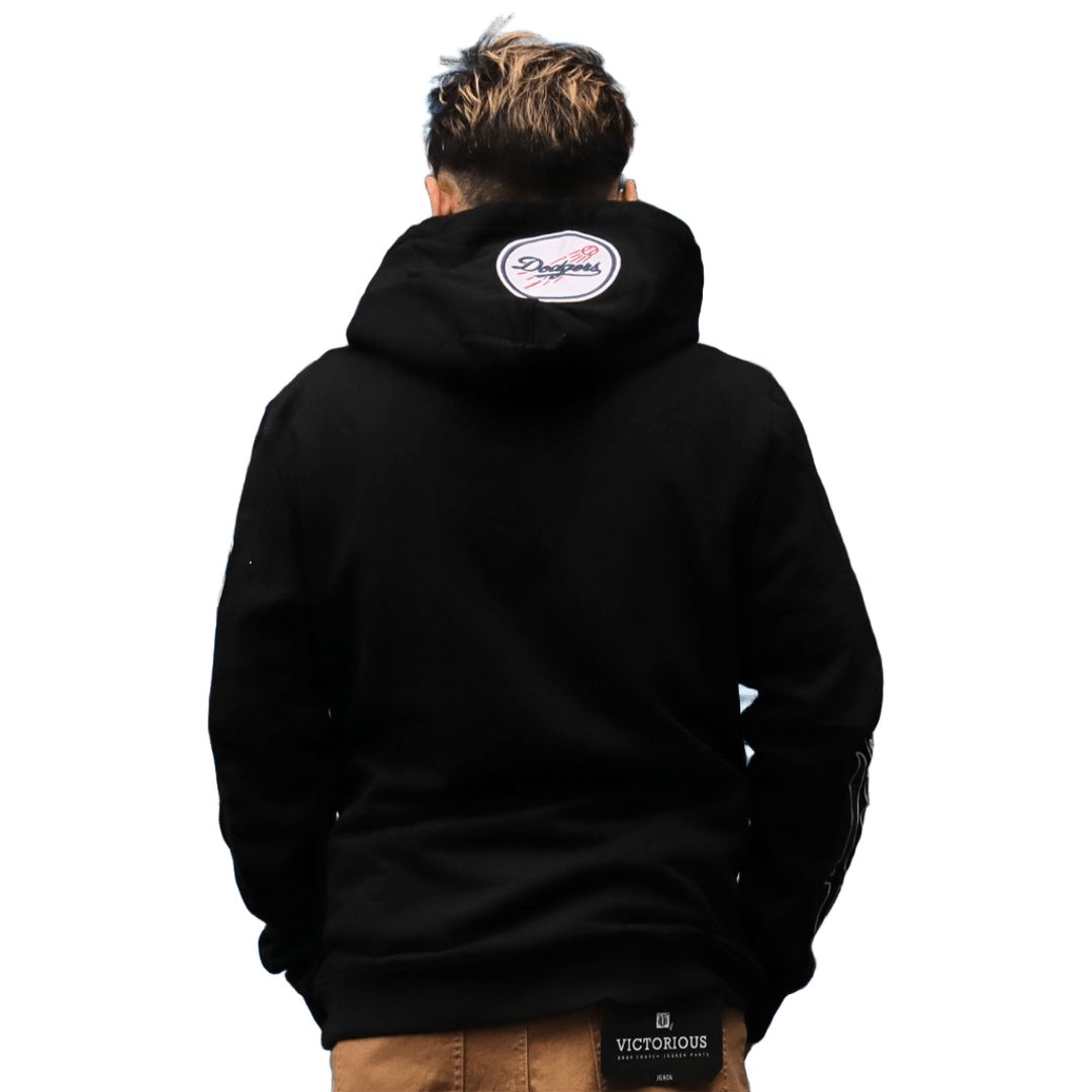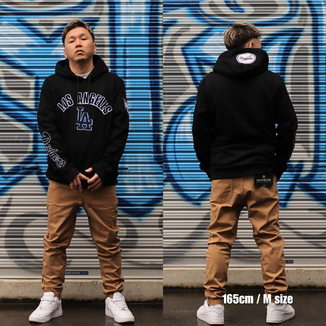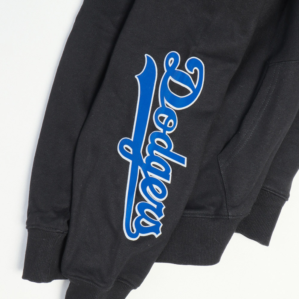 LAドジャースのクラシックロゴをフロントにレイアウトし、袖とフードにもパッチを施したプレミアムな一枚。 ※サイズ感は日本規格に近い作りとなります。