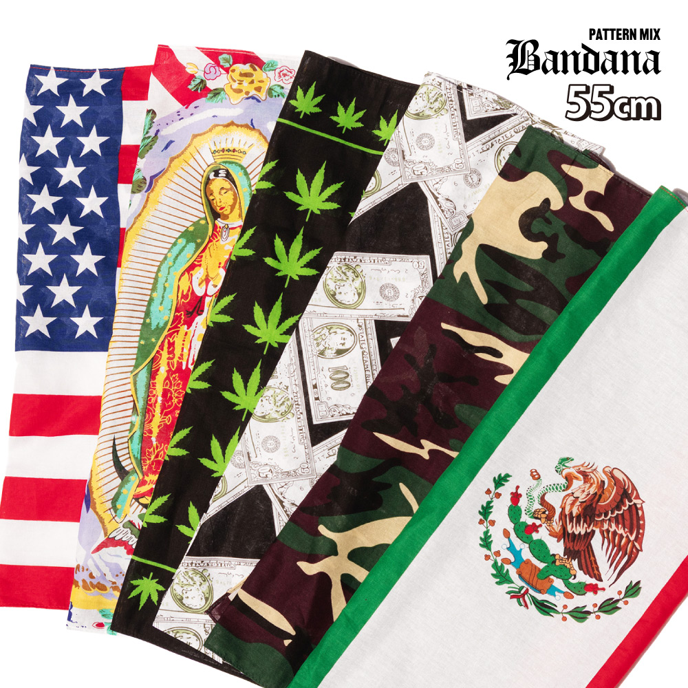 BANDANA バンダナ 柄物 ハンカチ スカーフ お弁当包み 迷彩 ガンジャ ドル ストライプ マリア メキシコ カラフル 派手 大判 大判サイズ HIPHOP チカーノ ローライダー