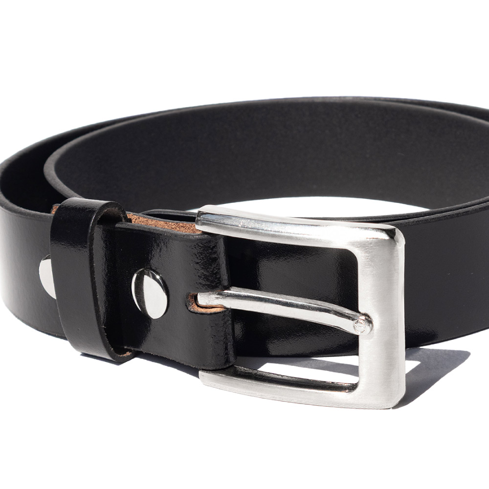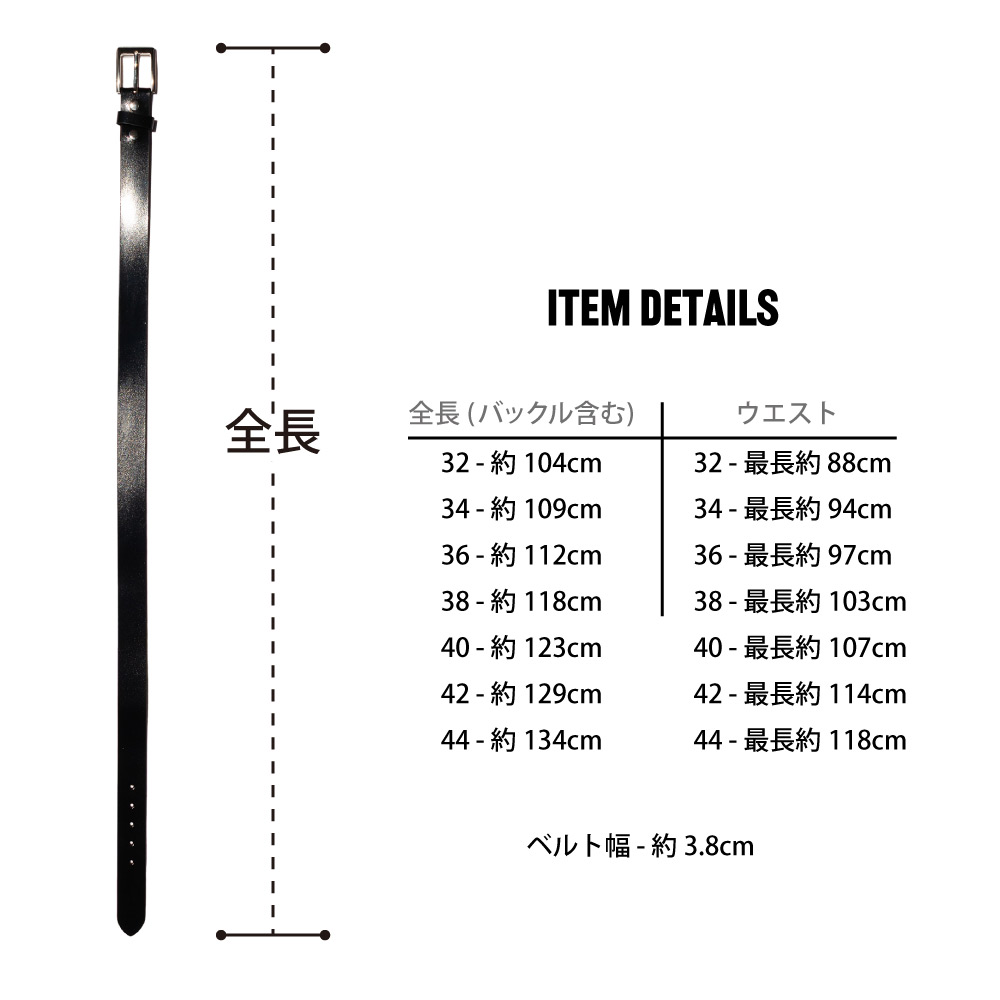 レザーベルト 【バックル交換可】 本革 幅3.8cm GENUINE LEATHER BELT 黒