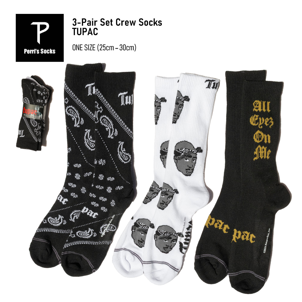 Perri's Socks ペリーズソックス 【TUPAC 3-Pair BLACK Bandana Crew Socks】 靴下 3足セット ソックス クルーソックス メンズ HIPHOP ギフト ウエストコースト