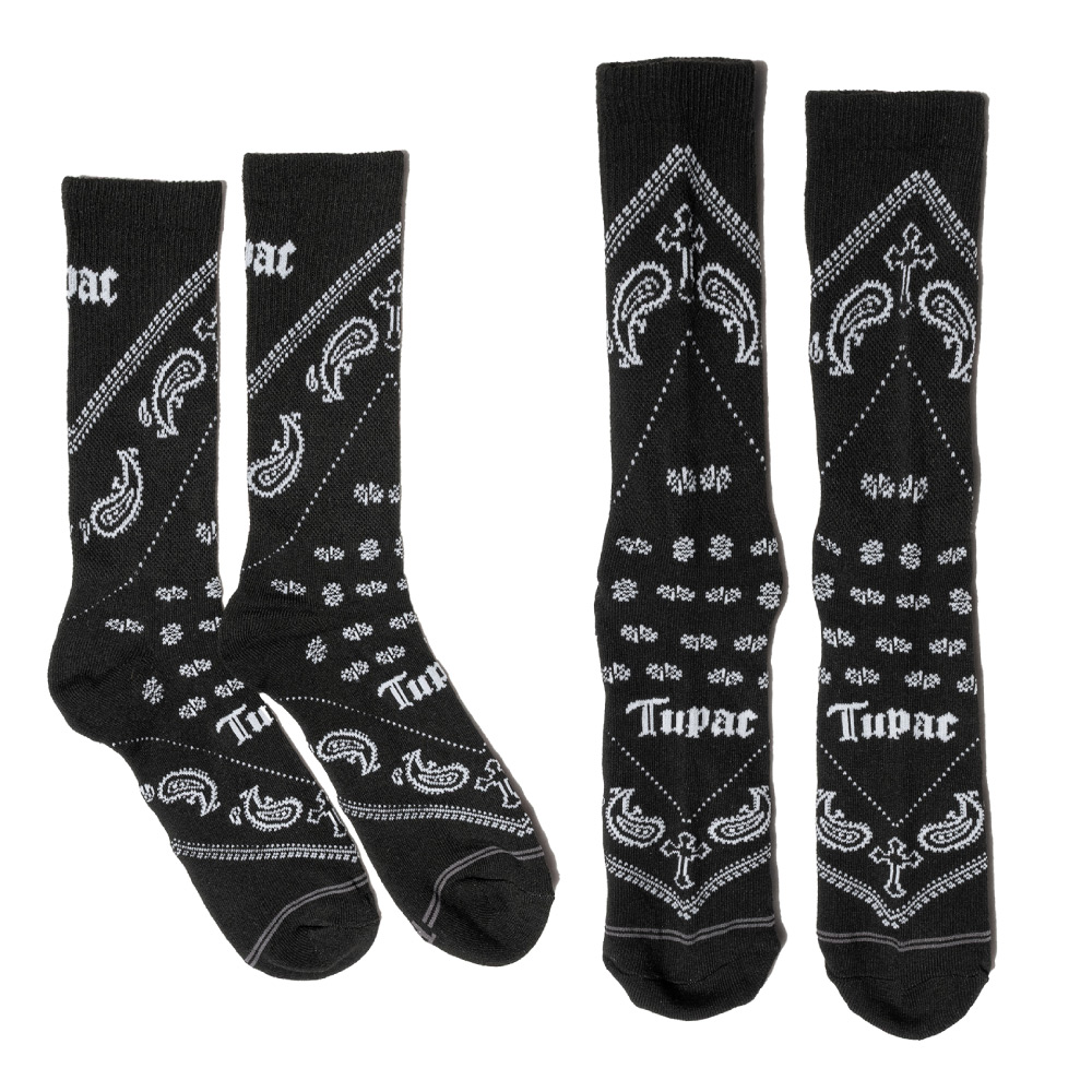 【TUPAC 3-Pair BLACK Bandana Crew Socks】