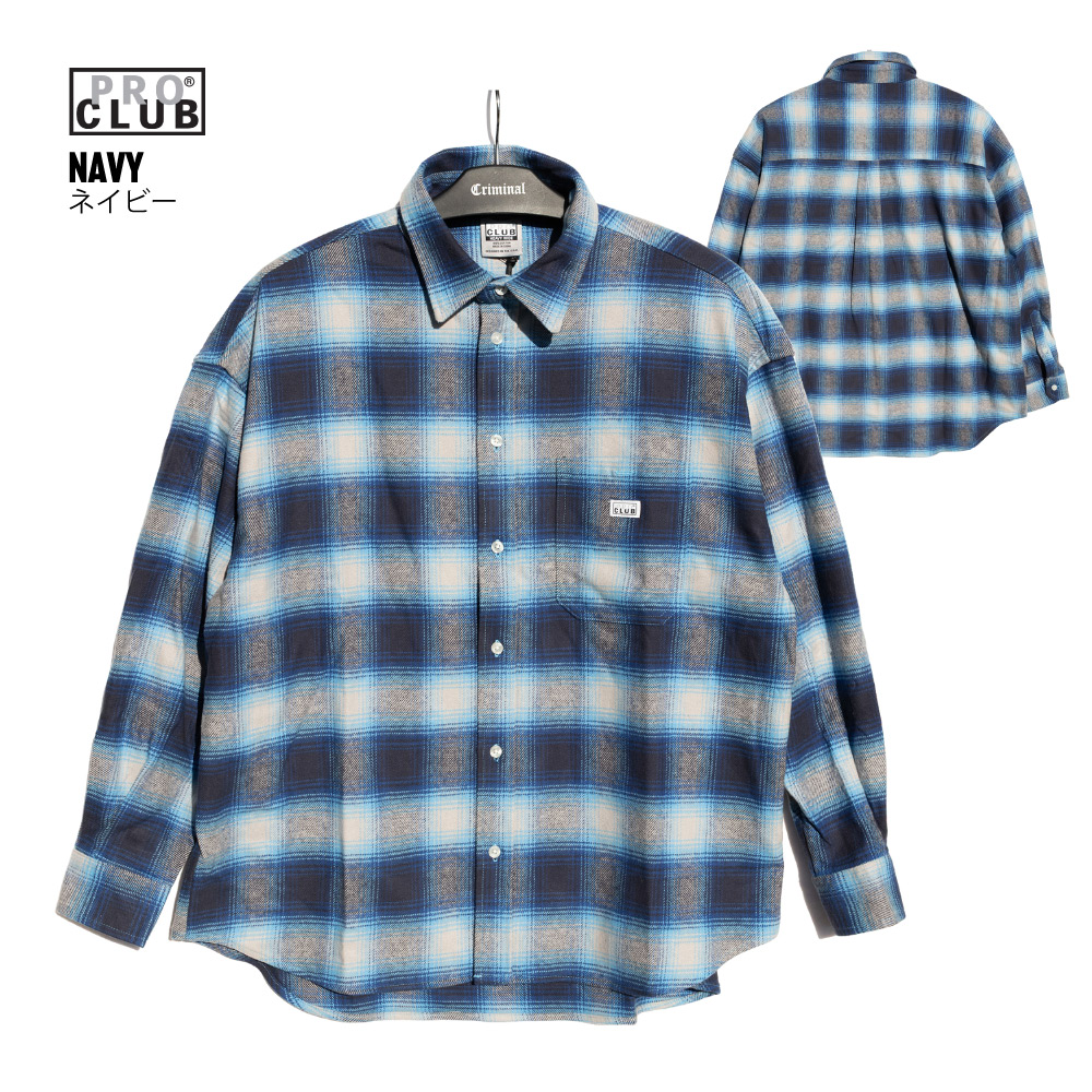 PRO CLUB プロクラブ 【Heavywide Ombre Flannel Shirt】 ロングシャツ チェックシャツ フランネルシャツ 厚手 長袖 ビッグサイズ 大きいサイズ ユニセックス メンズ
