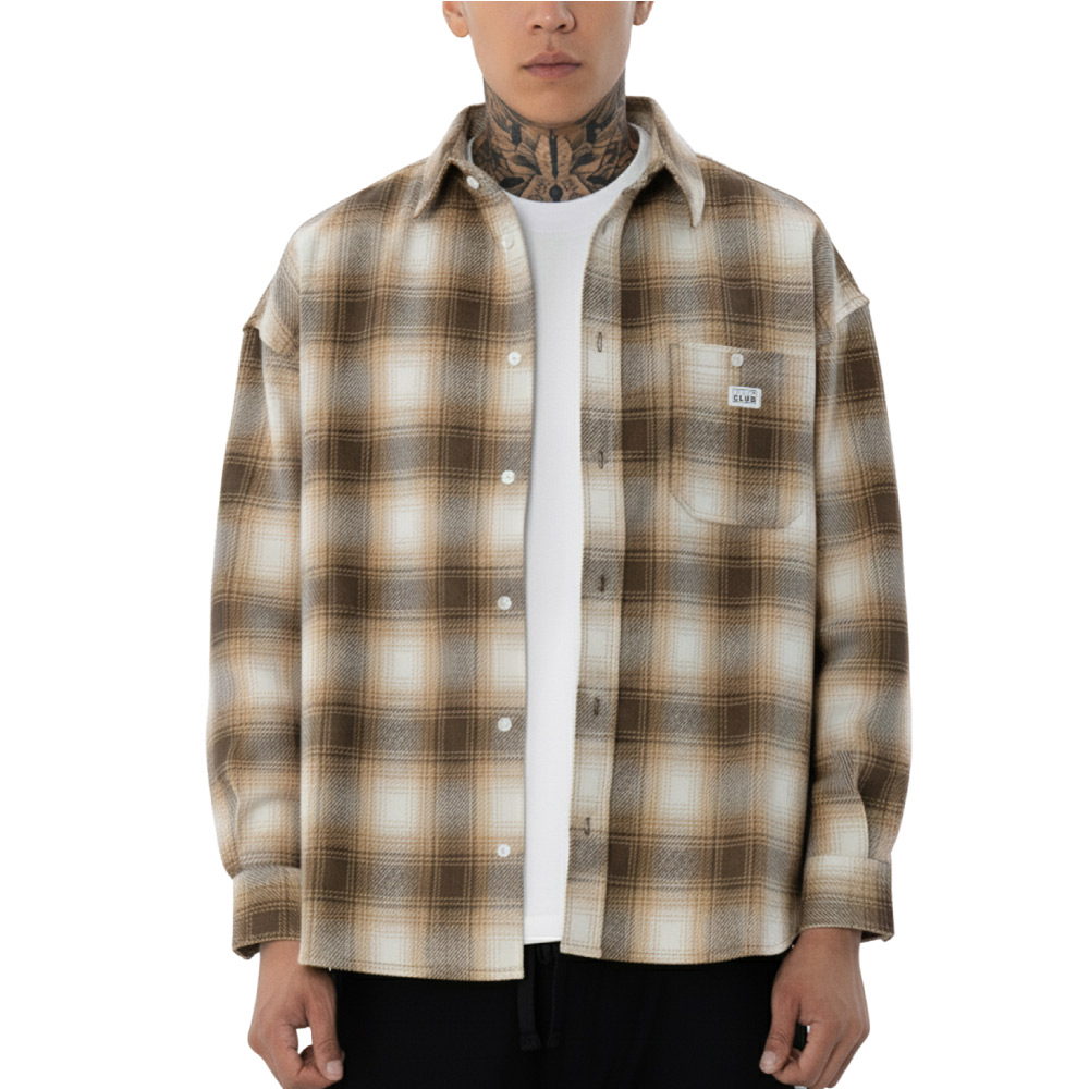 肉厚のコットン100%生地を使用したワイドタイプのフランネルシャツ。
