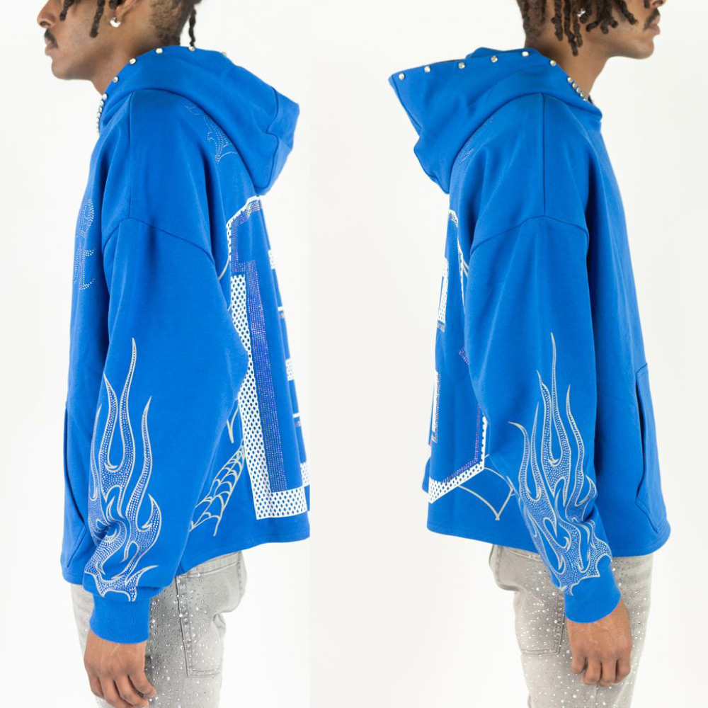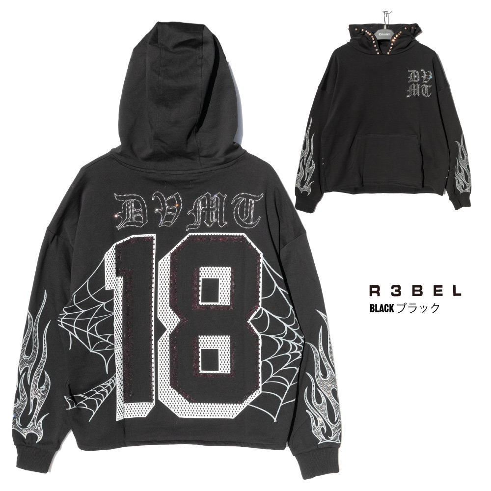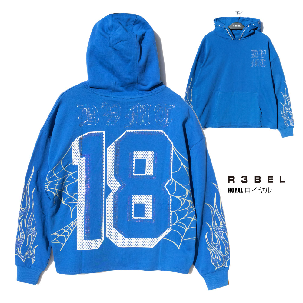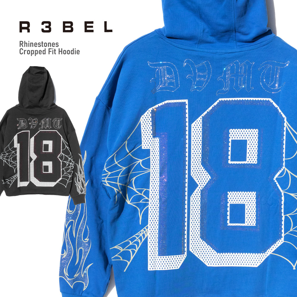 R3bel Denim レベルデニム 【Rhinestones Cropped Fit Hoodie】 パーカー プルオーバー フーディー ストーン クロップド丈 ショート丈 ストーン HIPHOP メンズ ユニセックス
