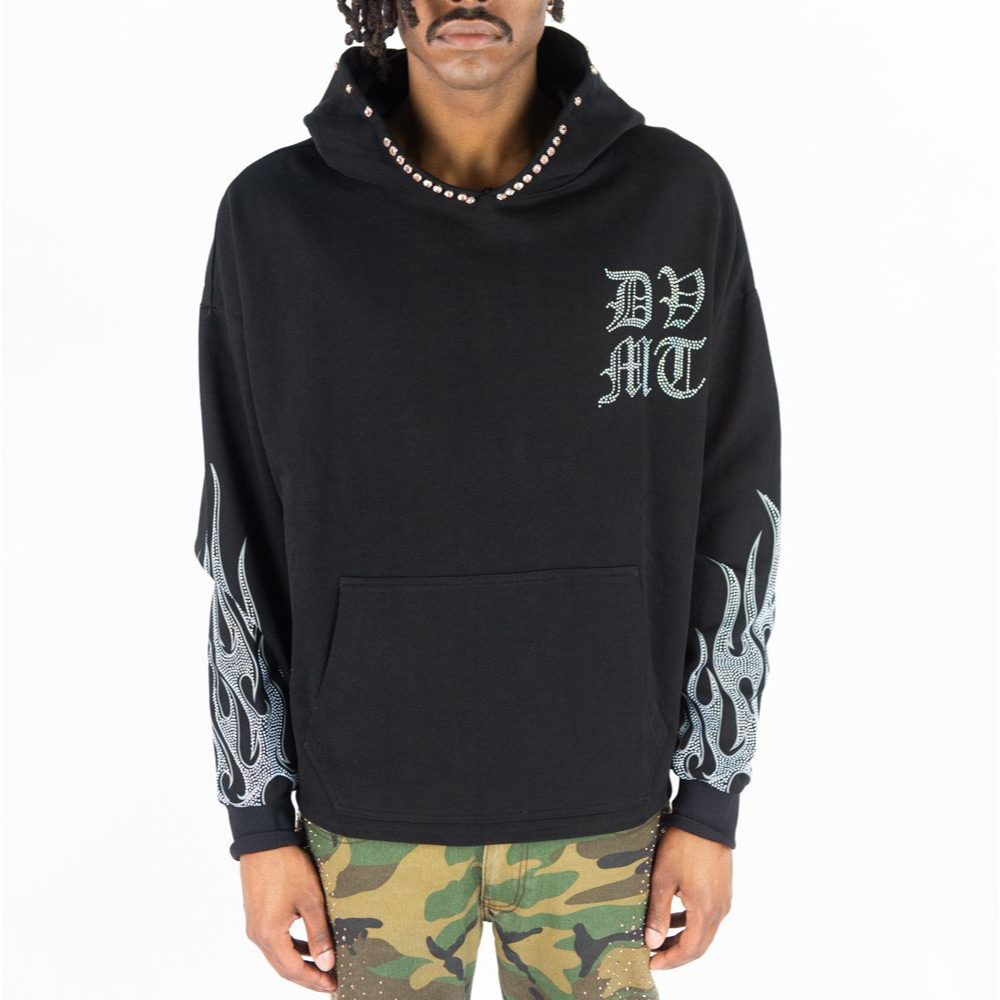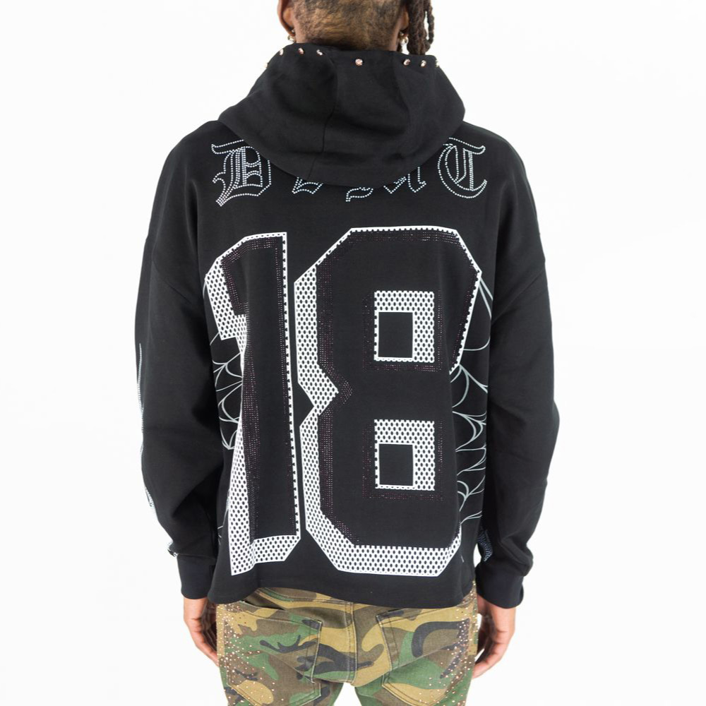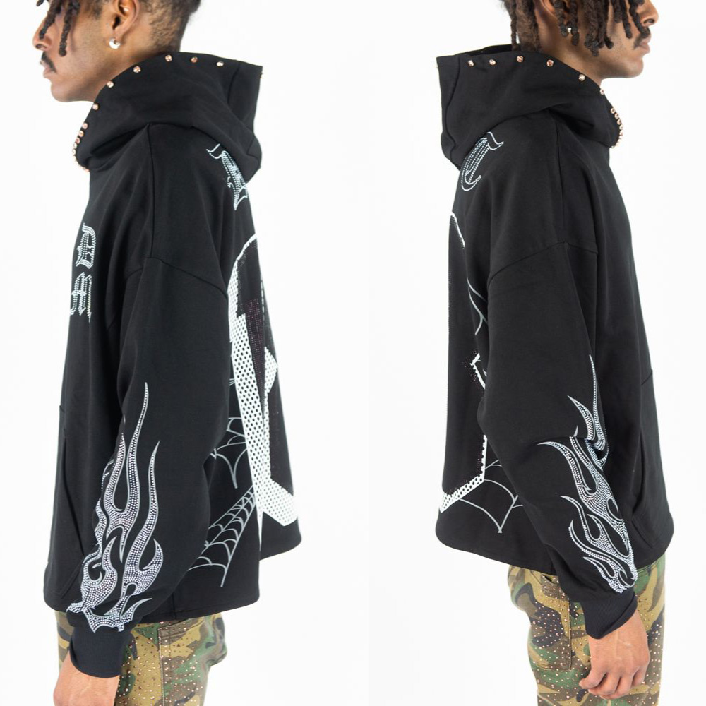 R3bel Denim レベルデニム 【Rhinestones Cropped Fit Hoodie】 パーカー プルオーバー フーディー ストーン クロップド丈 ショート丈 ストーン HIPHOP メンズ ユニセックス [w-pk-r3bel-752321]